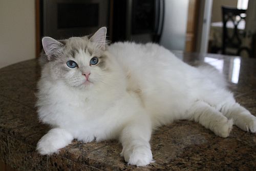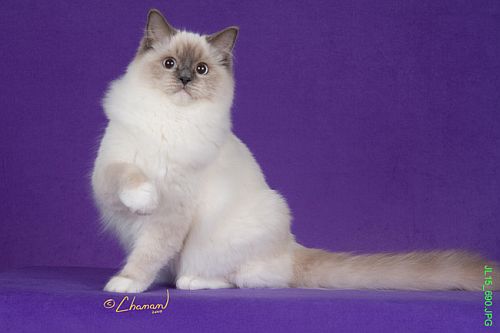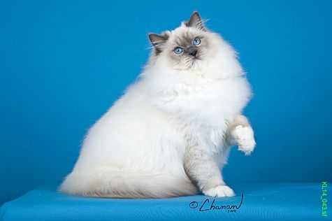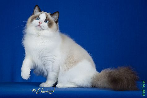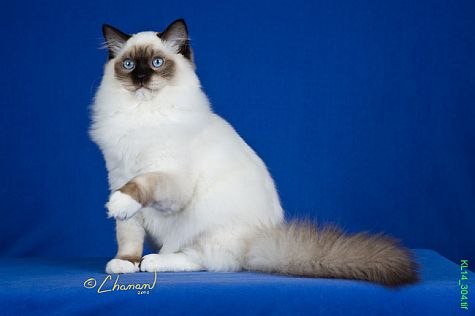 Lance is not only gorgeous, but very loving and mellow. He is a blue bicolor. He is not only very loving, but an excellent example of the Ragdoll breed, which is why he ended up as #1 Ragdoll in the world! At almost 2 years of age, Lance is now 22 pounds. He has phenomenal type, ear set, eye color, boning, coat texture, eye shape, and size. He is the entire package!