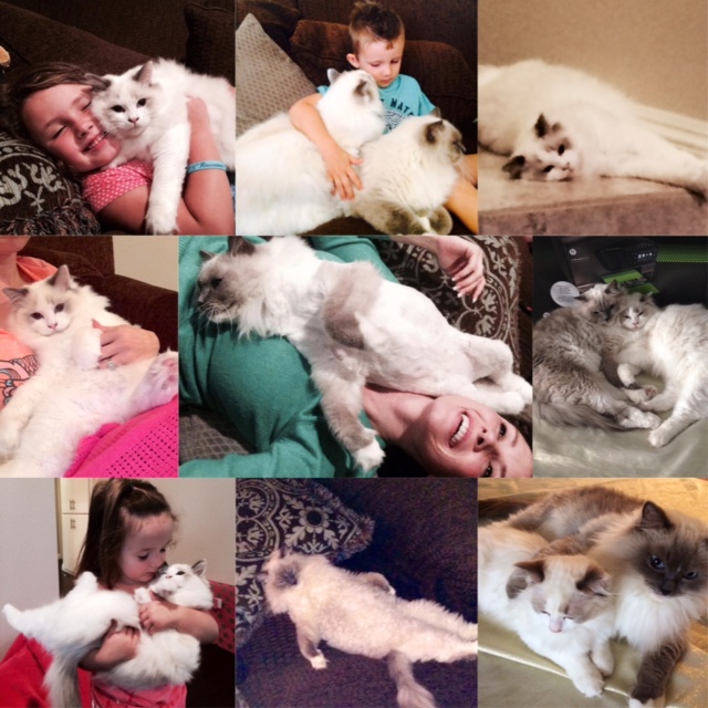 I don’t think it is possible for me to put into words how grateful we are to you for raising such lovable babies that we adore so much. Oliver and Tommy are not only a tremendous blessing to our family, but also to each other. They are the sweetest, most loving and BEAUTIFUL boys and we are just in LOVE! Everyone who comes over wants to take them home with them. They’ve never met a stranger. They are instant best friends with anyone who walks through the door. They are confident little guys! My kids carry them around like they are their babies. My 3 year old loves to push them around in her toy stroller and they just go along with it. Thank you for your dedication and commitment to raising the best ragdoll kitties around!
