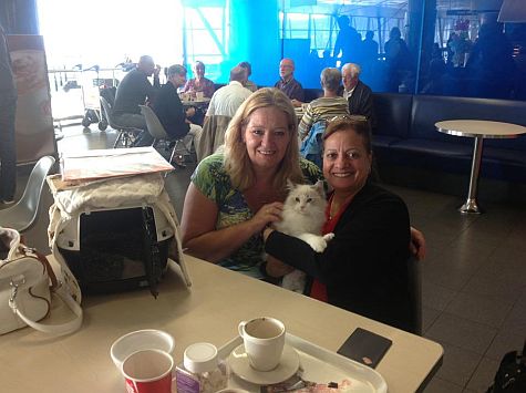 He is here, and we are so happy. Let me tell you a story, we are already in love with him. He is just so amazing, sweet, and loving. A really, really, sweet boy. He keeps looking at you with a look of trust. It is so great to see that. He doesn’t stop purring and cuddling. Thanks again. Thank you for the great job that you did with him. He is just so well socialized. Amazing to see that. We are in love!