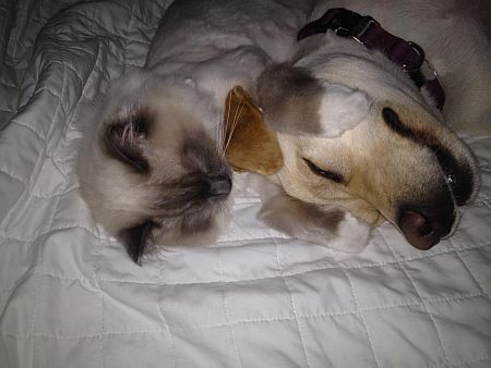 Oh my I am in total love with “Hugo”. He brings everyday or my day joy. He is the funniest little guy. Molly & Mya, and Hugo are best buds. We even brought him over to my families place and they have puppy dogs…he just made himself at home on their bed. He had his first bath tonight…wasnt exactly sure at first them went with it.. not a huge fan…but his passive personnality just goes with the flow. I cannot say thank you anymore. My search is over with results I never ever expected in a cat. He is truly amazing…and my best friend. He is my casanova…what a lover…full of many many kisses but I cant take all the benefits from it…He seems to love the world..kisses all around! We have taken a ton of pictures…so that is a good thing you never get bored of seeing him.. Its great to stay in touch anyways…you can see him grow. He is spoiled like you wouldnt believe. Has to have the best of the best!! He is a hit where ever he goes ( as we take him everywhere) I brought a fancy little bag for him to come everywhere… We take the girls (dogs) everywhere we go…so theres no reason why he cant either.. haha..